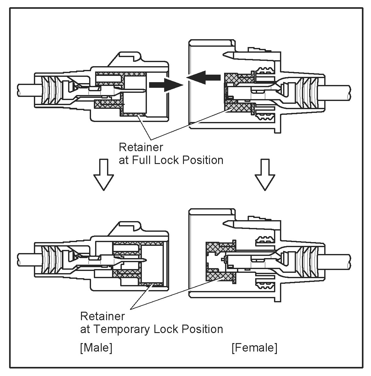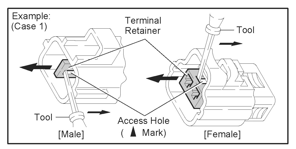 Type which cannot be pulled as far as Power Lock insert the tool straight into the access hole of terminal retainer as shown.