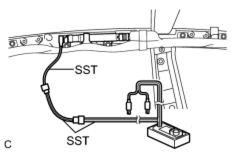 (2) After connecting the SST below to each other, connect them to the curtain shield airbag assembly.