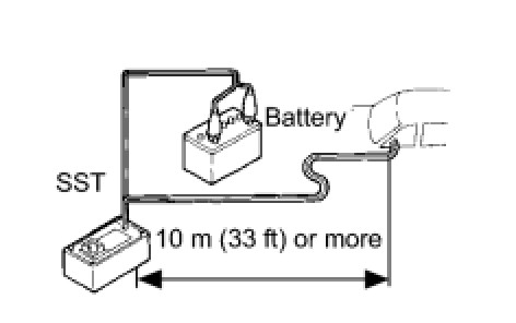 (5) Connect the red clip of the SST to the battery positive (+) terminal and the black clip of the SST to the negative (-) terminal.