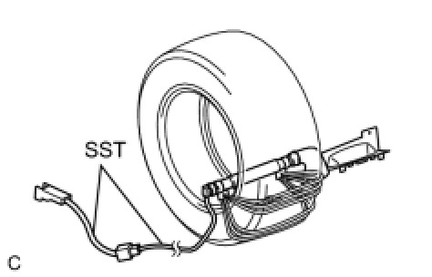 To avoid damaging the SST connector and wire harness, do not lock the secondary lock of the twin lock. Also, secure some slack for the SST wire harness inside the tire.
