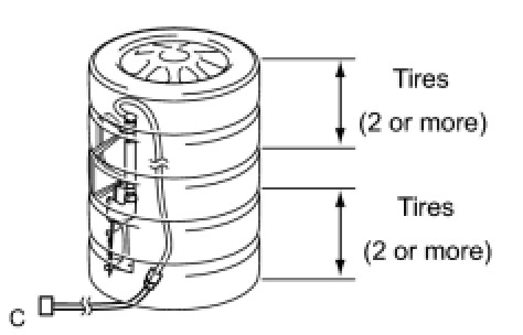 (3) Tie the tires together with 2 wire harnesses.