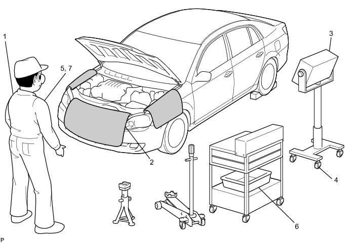 (b) JACKING UP AND SUPPORTING VEHICLE