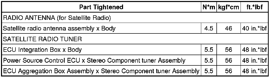 SERVICE SPECIFICATIONS: AUDIO / VISUAL: TORQUE SPECIFICATIONS