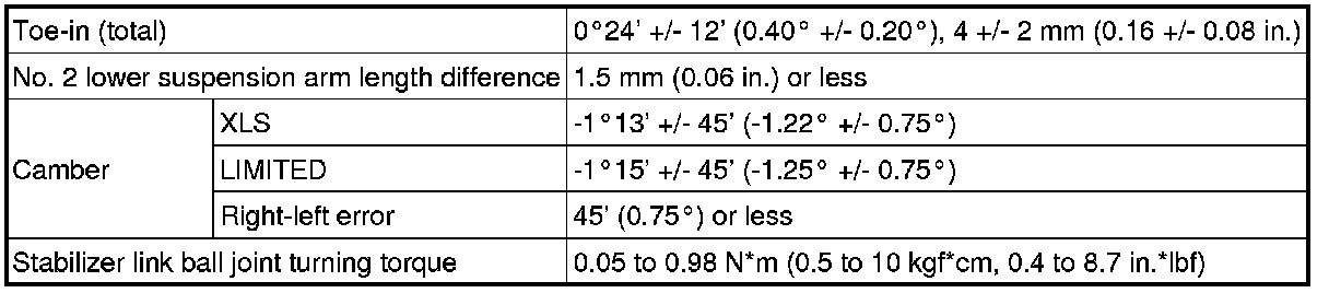 SERVICE SPECIFICATIONS: SUSPENSION: SERVICE DATA