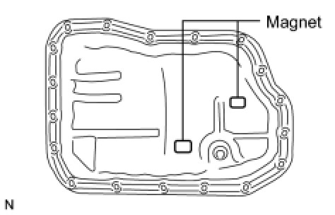 AUTOMATIC TRANSAXLE OIL PAN SUB-ASSEMBLYInstall the 2 magnets in the automatic transaxle oil pan sub-assembly.