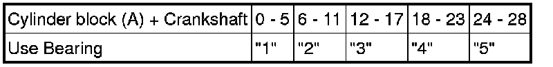 EXAMPLE: Cylinder block "11" + Crankshaft "06" = Total number 17 (Use bearing "3")