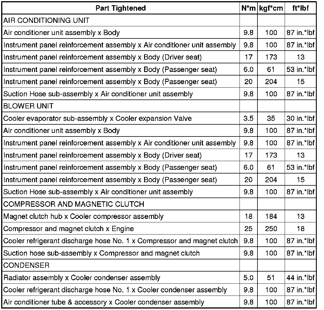 SERVICE SPECIFICATIONS: AIR CONDITIONING: TORQUE SPECIFICATIONS