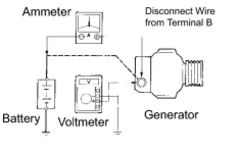 (1) Disconnect the wire from terminal B of the generator and connect it to the negative (-) lead of the ammeter.