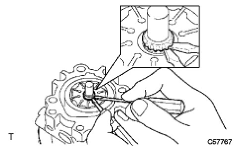 (a) Using a screwdriver, remove the vane pump housing oil seal.
