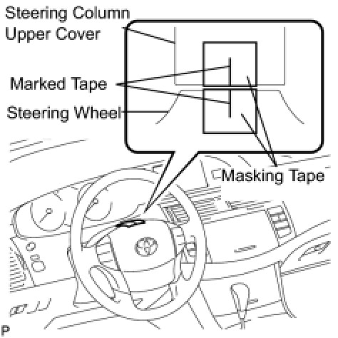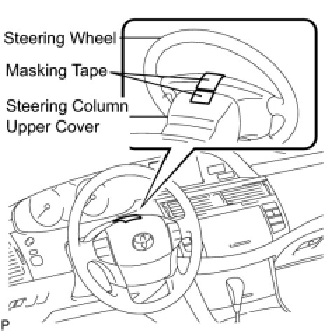 (1) Apply masking tape on the top center of the steering wheel and steering column upper cover.