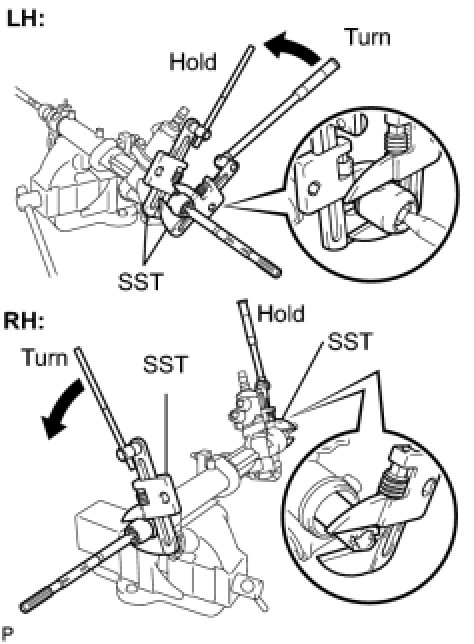 (b) Using SST, remove the steering rack end sub-assembly and the claw washers.