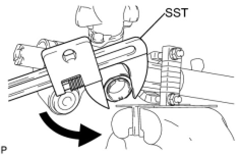 (b) Using SST, hold the control valve shaft and remove the nut.