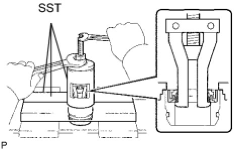 (a) Using SST and a press, remove the cylinder tube oil seal.