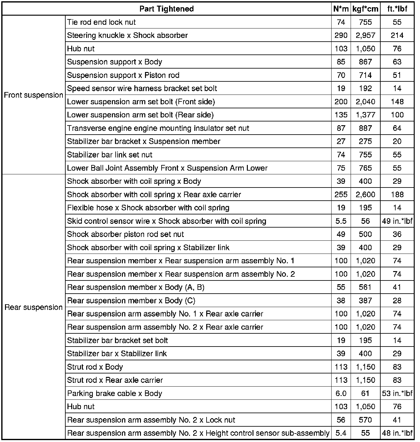 Suspension: Specifications