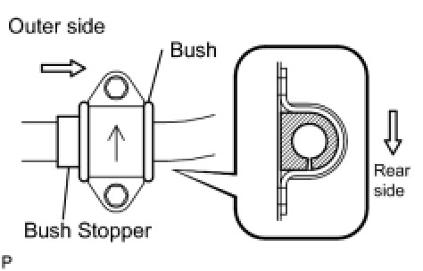 * Place the cutout of the stabilizer bushes as facing the rear side as shown in the illustration.