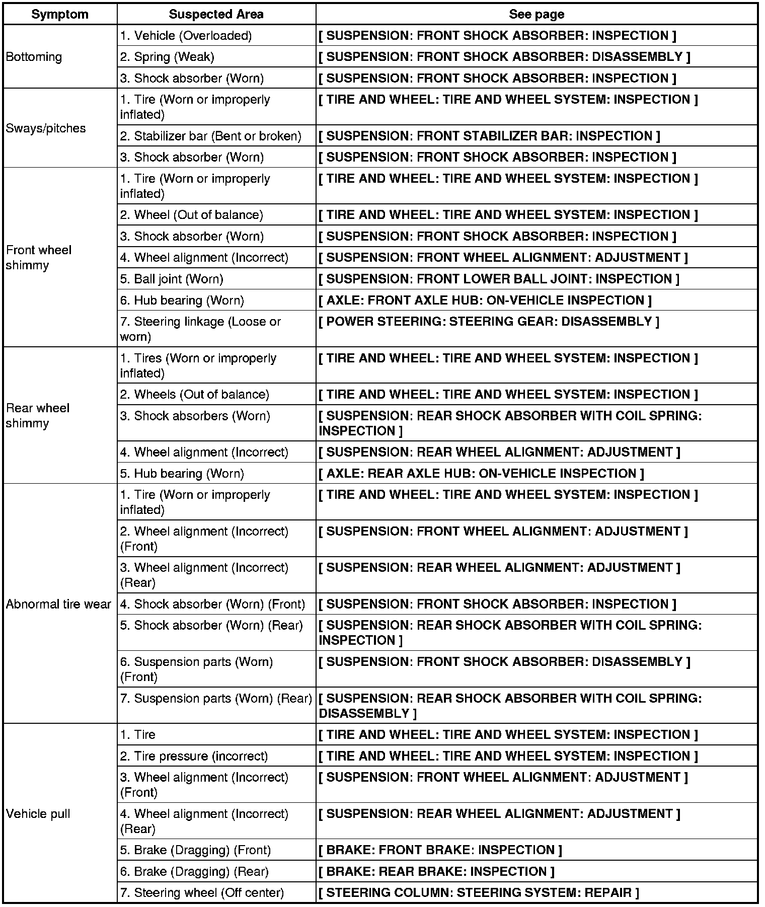 SUSPENSION: SUSPENSION SYSTEM: PROBLEM SYMPTOMS TABLE