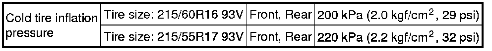 SERVICE SPECIFICATIONS: TIRE AND WHEEL: SERVICE DATA