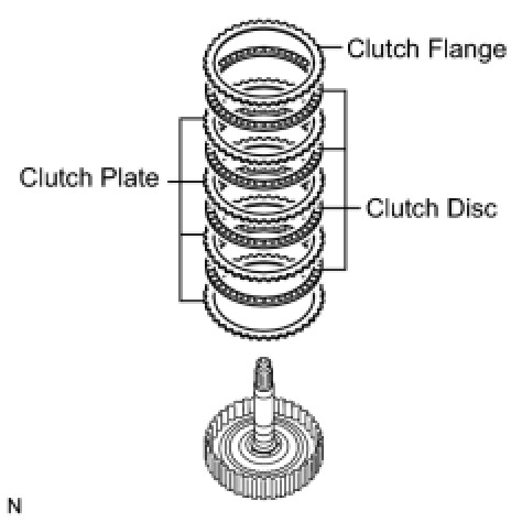 (b) Remove the flange, 4 clutch discs, and 4 clutch plates from the direct multiple disc clutch assembly.