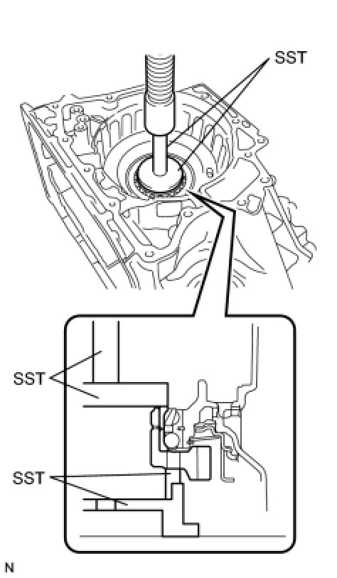 (a) Using SST and a press, press in the planetary gear assembly to the transaxle case.