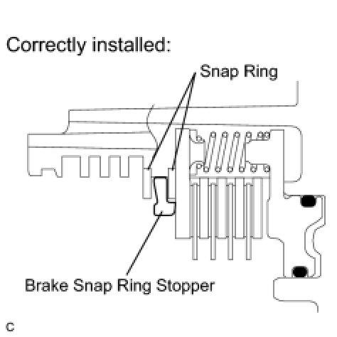 If the brake snap ring stopper cannot be turned by hand, the brake snap ring stopper may have been installed upside down, or the snap ring may have not been completely fitted in the groove on the oil pump. Remove and reinstall the snap ring and the brake snap ring stopper.