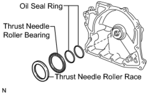 (d) Coat the thrust needle roller bearing and thrust needle roller race with ATF and install them on the transaxle case.