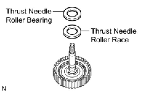 (b) Coat the thrust needle roller bearing and thrust needle roller race with ATF and install them on the underdrive planetary gear assembly.
