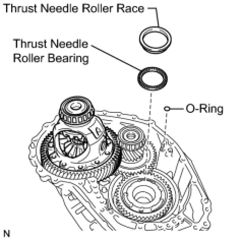 (a) Coat the thrust needle roller bearing with ATF and install it on the transaxle case.