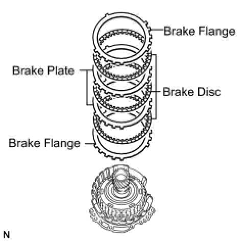 (a) Install the 2 brake flanges, 3 brake discs, and 2 brake plates to the oil pump assembly.