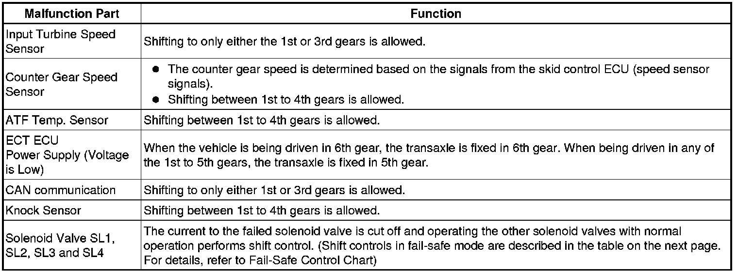 U660E AUTOMATIC TRANSAXLE: AUTOMATIC TRANSAXLE SYSTEM: FAIL-SAFE CHART