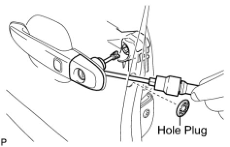 (b) Install the front door service hole cover LH, as shown in the illustration.