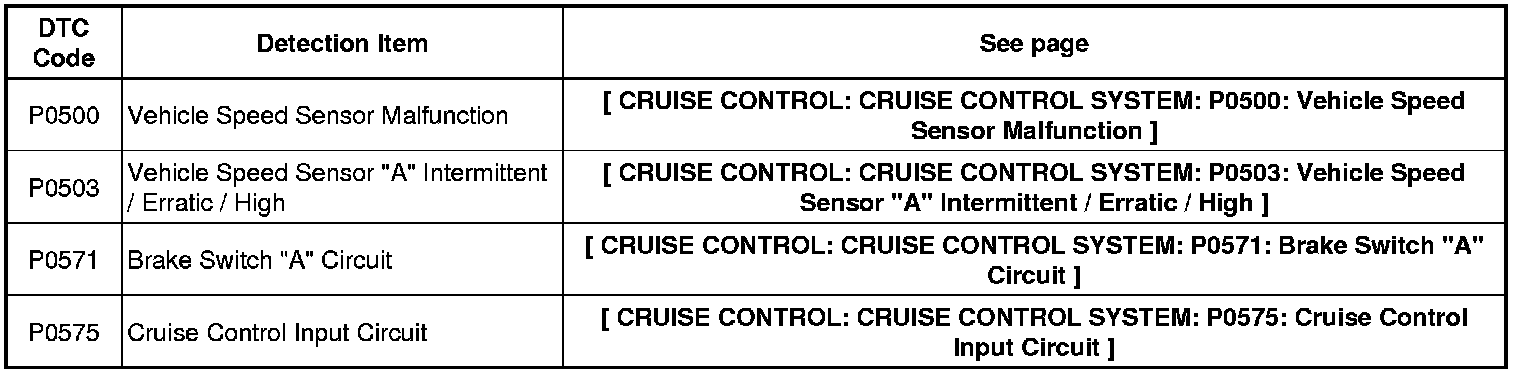 CRUISE CONTROL: CRUISE CONTROL SYSTEM: DIAGNOSTIC TROUBLE CODE CHART