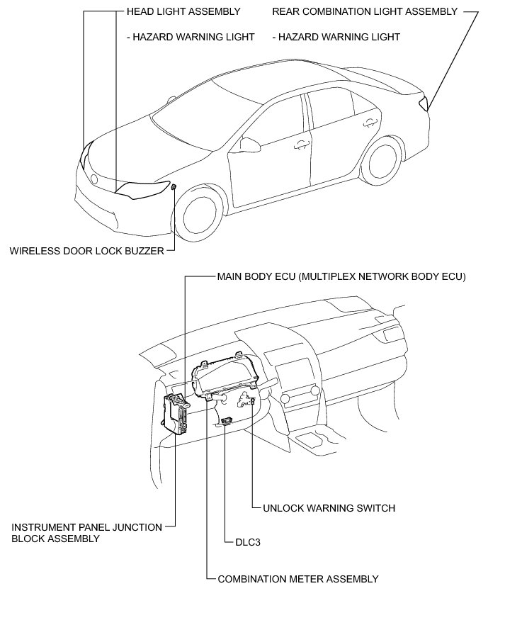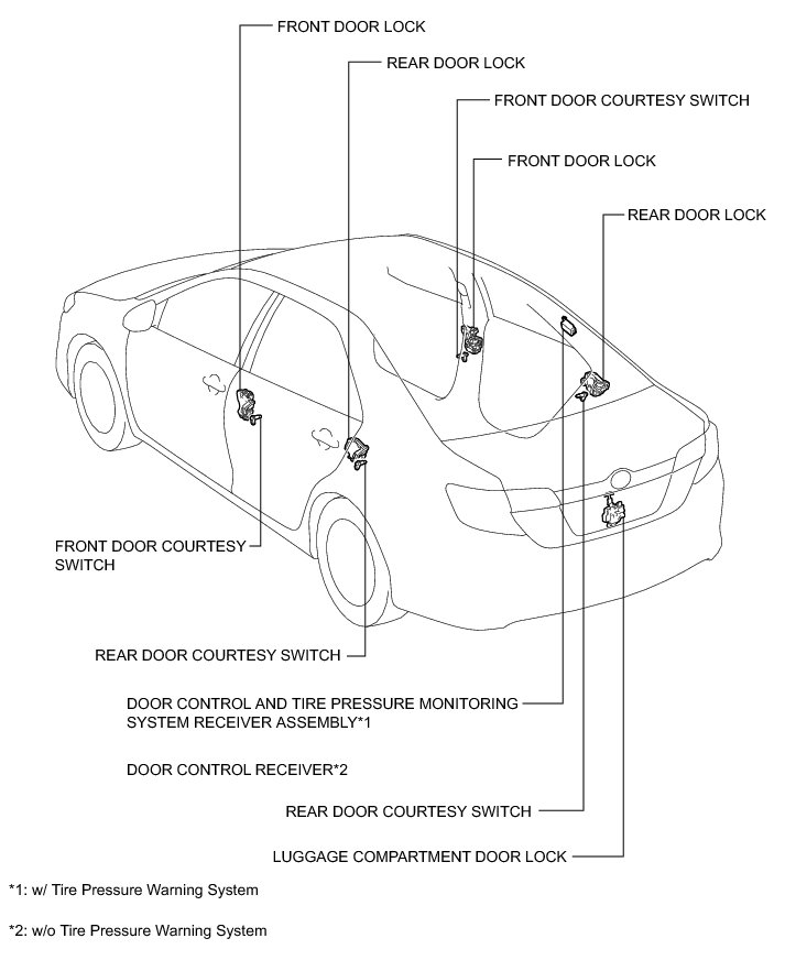 DOOR LOCK: WIRELESS DOOR LOCK CONTROL SYSTEM (w/o Smart Key System): PARTS LOCATION