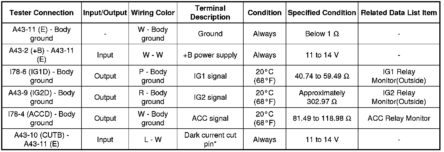 If the result is not as specified, the main body ECU (multiplex network body ECU) or instrument panel junction block assembly may have a malfunction.