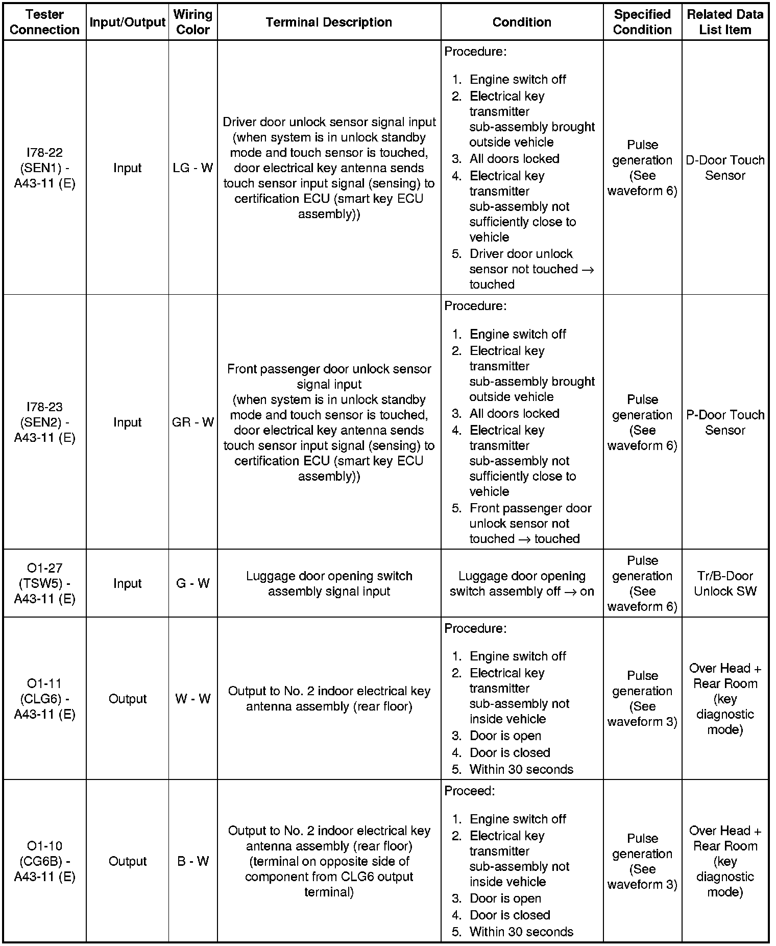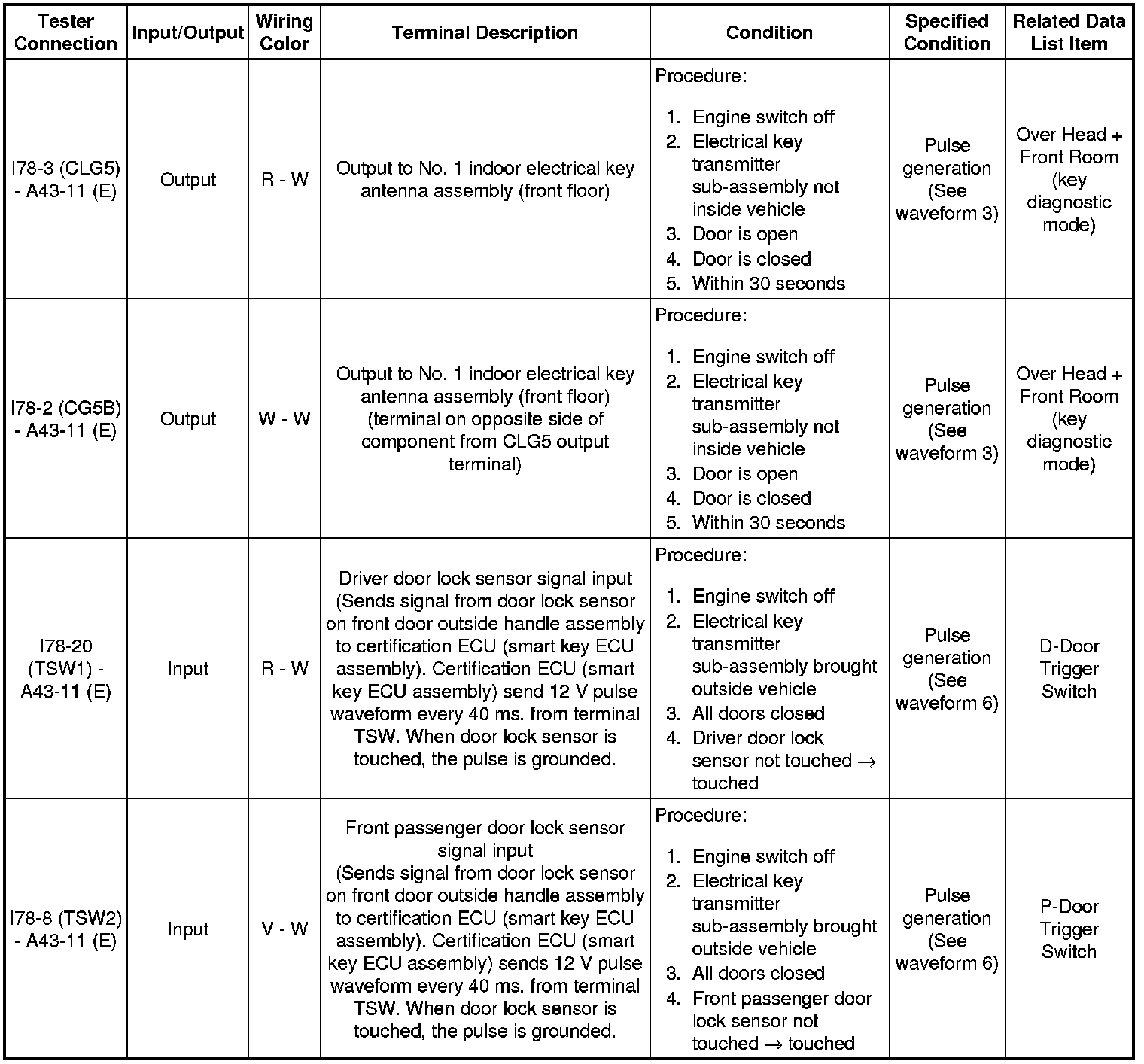 (c) Reconnect the A43 and I78 certification ECU (smart key ECU assembly) connectors.