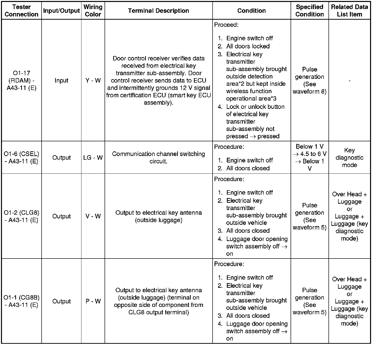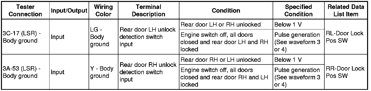 THEFT DETERRENT / KEYLESS ENTRY: SMART KEY SYSTEM (for Entry Function): TERMINALS OF ECU