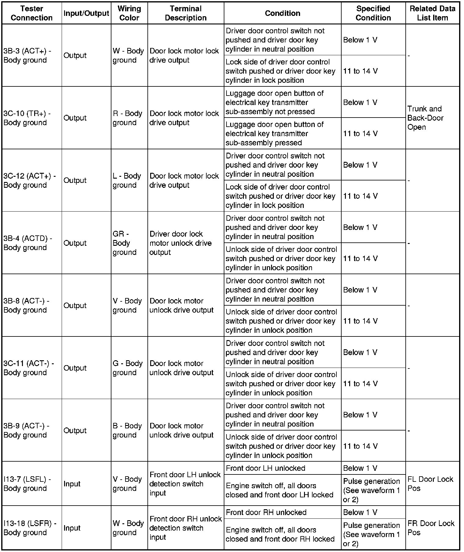 * *: w/ Passenger Door Lock Switch