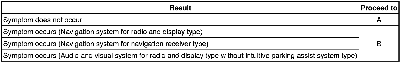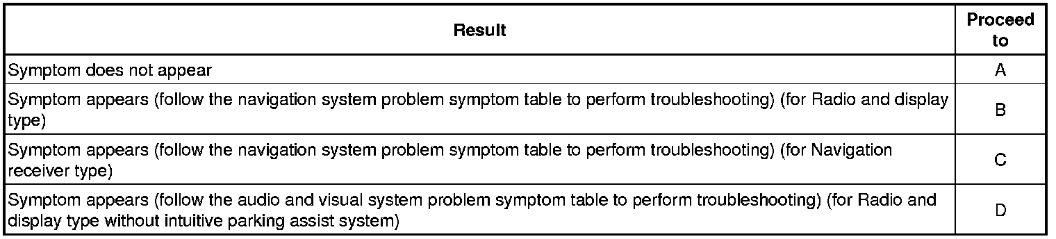 (a) Refer to the navigation system (for Radio and display type) Problem Symptoms Table.