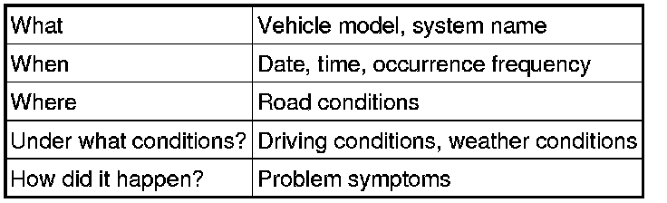 * When troubleshooting, confirm that the problem symptoms have been accurately identified. Preconceptions should be discarded in order to make an accurate judgment. To clearly understand what the problem symptoms are, it is extremely important to ask the customer about the problem and the conditions at the time the malfunction occurred.