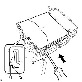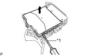 (c) Using the screwdriver, carefully raise the main body ECU (multiplex network body ECU) up to the position where the connector becomes disengaged.