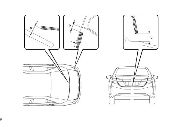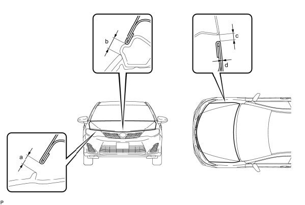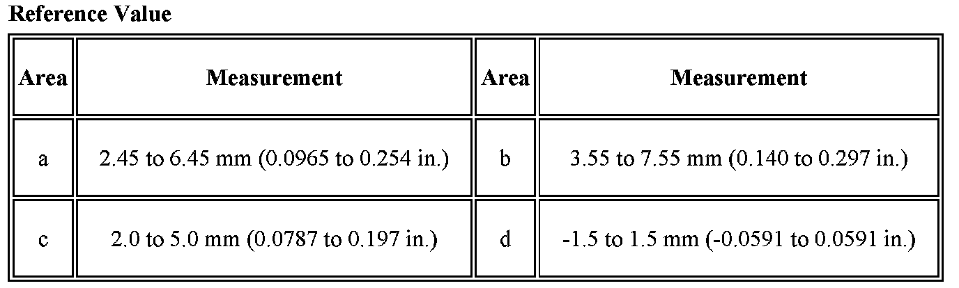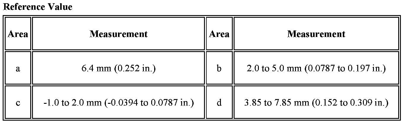 a. Check that the clearance measurements of areas a through d are within each standard range.