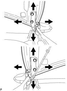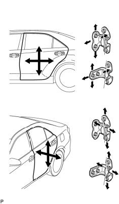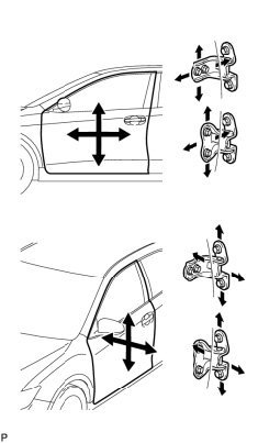 a. Using SST, loosen the hinge bolts on the vehicle body and adjust the door position.