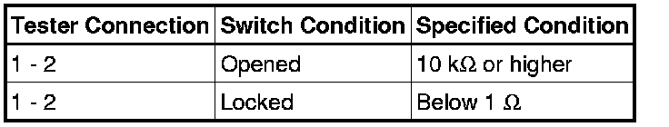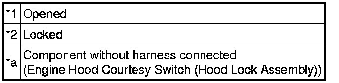 If the result is not as specified, replace the engine hood courtesy switch (hood lock assembly).