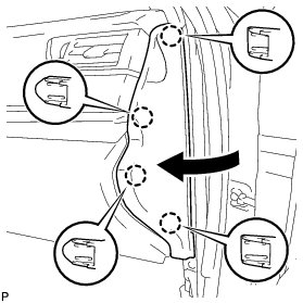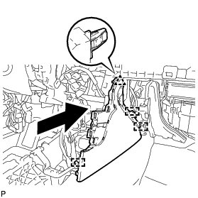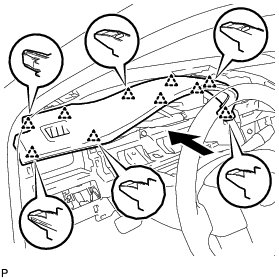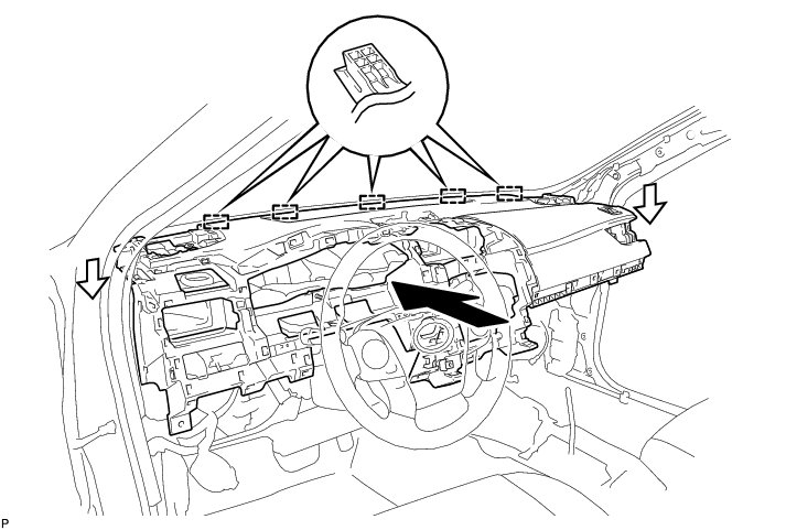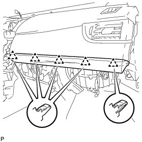 (a) Engage the 5 guides and temporarily install the instrument panel safety pad assembly as shown in the illustration.