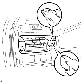 When installing the No. 2 instrument panel register assembly, check that the wire harness is not caught between the No. 2 instrument panel register assembly and duct.