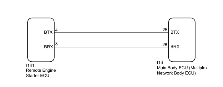 When the remote engine starter ECU receives wireless signals via BRAKES and CAN communication line, the remote engine starter ECU transmits the signals to each ECU through the main body ECU (multiplex network body ECU) via the CAN communication line, and starts or stops the engine.