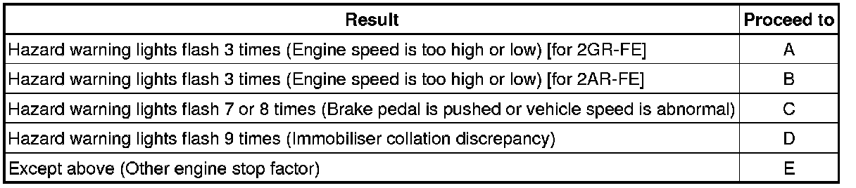 NG -- CHECK ENGINE STOP FACTOR (HAZARD WARNING LIGHT FLASHING PATTERN)