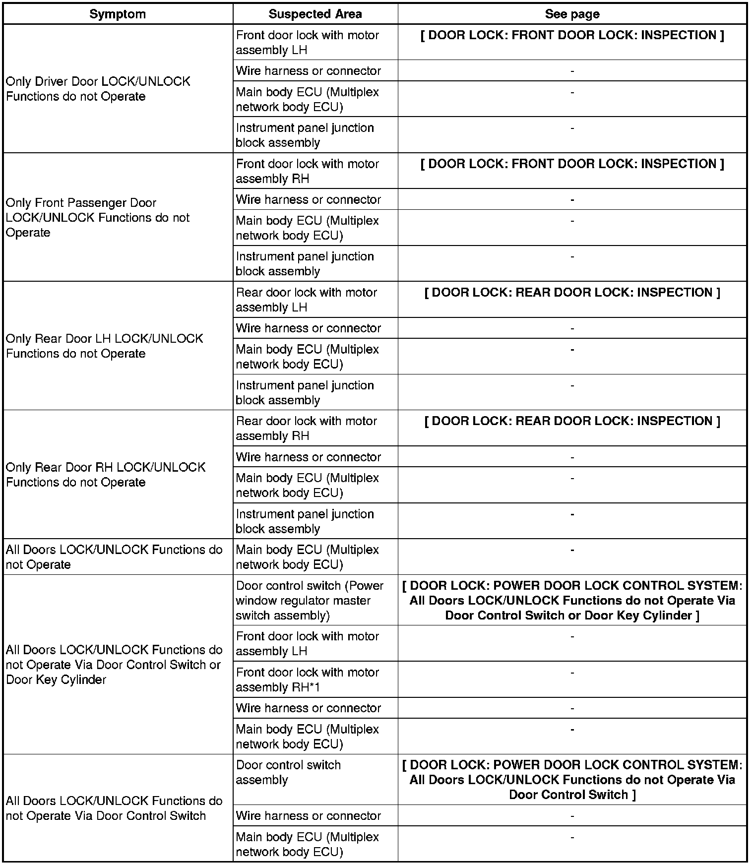 DOOR LOCK: POWER DOOR LOCK CONTROL SYSTEM: PROBLEM SYMPTOMS TABLE