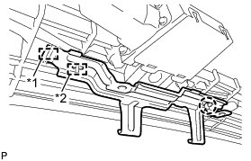 (a) Engage the 2 guides in the direction indicated by the arrow (1) in the illustration to install the roof wind deflector panel sub-assembly.
