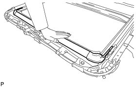 (a) Hold down the roof wind deflector panel sub-assembly.