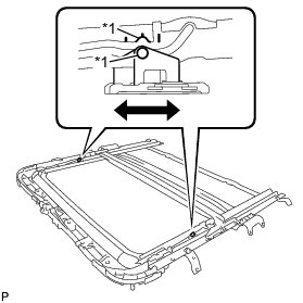 (a) Using a screwdriver, slide the sliding roof drive cable sub-assembly in either direction indicated by the arrows in the illustration and alignment marks.